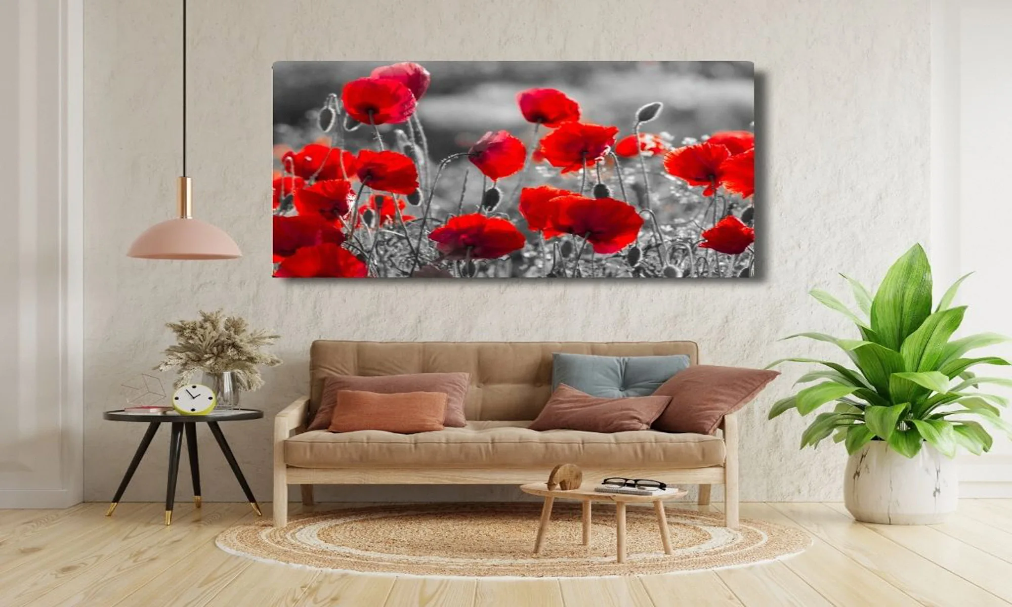 Cuadro Amapolas Rojas Arte Moderno sublimado sobre lienzo, ideal para sala, comedor o habitación. Listo para colgar, envío gratis en Colombia. Pago contra entrega o en línea (tarjeta, PSE y efectivo).