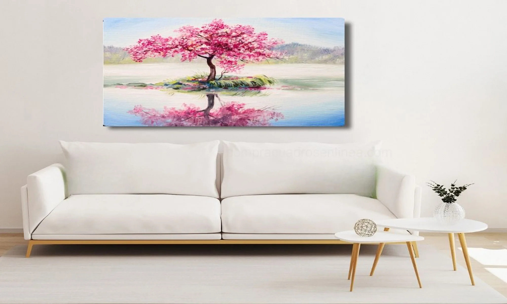 Cuadro Árbol Sakura Rosado con Reflejo