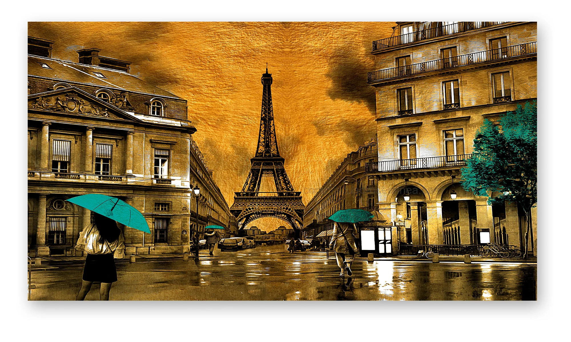 Cuadro París Torre Eiffel con Paraguas Turquesa